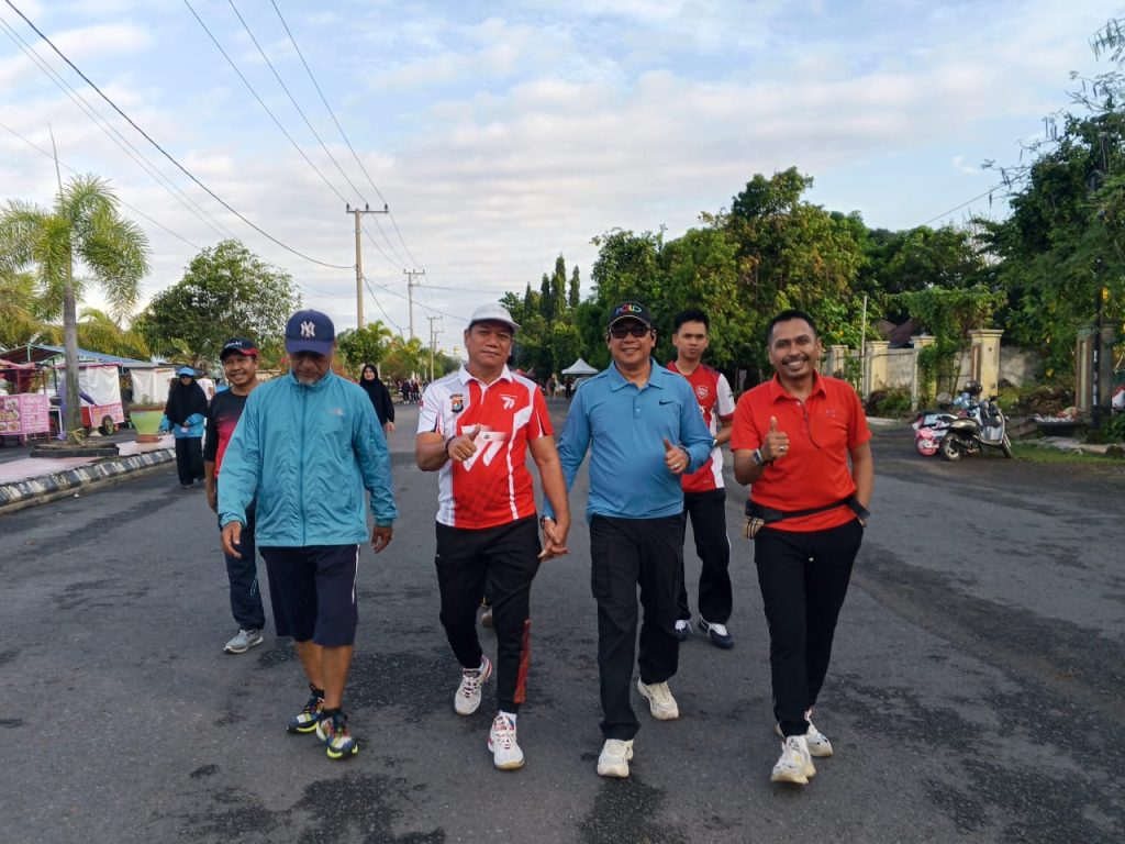Nursaid Mustafa Sekda Polewali Mandar berbaur dengan masyarakat mulai dari senam dan jogging di area Pantai Bahari.